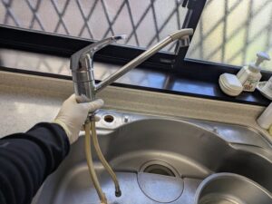 キッチン水栓施工中の様子