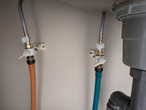 給水と給湯管の接続部材を交換します。