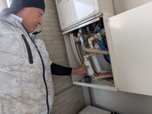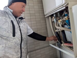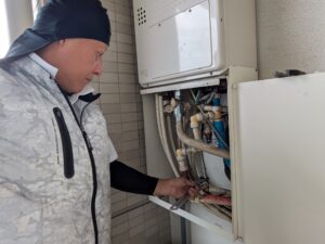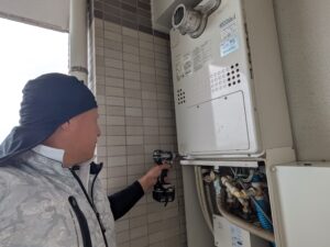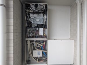 配線の処理をしたら給湯器の前面パネルをもどします。