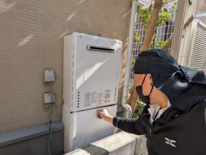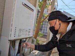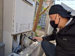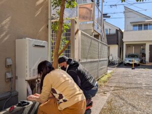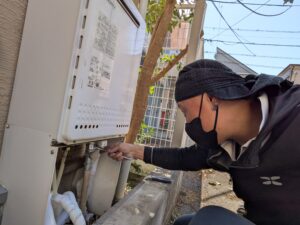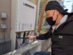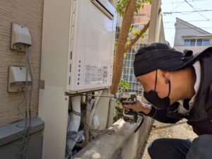 自動湯張りをして、各配管の水漏れとガス漏れを再確認します。