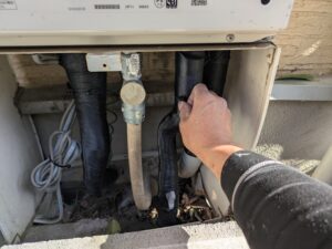 各配管の水漏れとガス漏れ検知器でガス漏れの確認します。