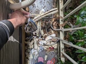 コンセント・リモコン・各配管を外して給湯器本体を撤去します。