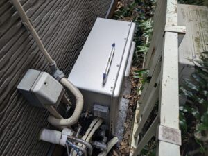 今回は給湯器内部の水漏れで壊れてしまった据置型給湯器の交換です。