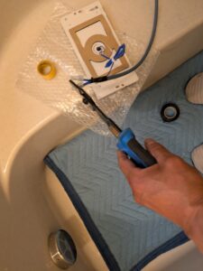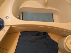 浴室の床を養生します。