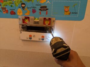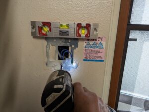 浴室リモコンの水平を確認しなからビス止めします。