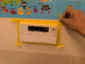 浴室リモコンのまわりをマスキングテープで養生します。