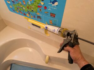 浴室リモコンまわりを防水の為シール処理します。