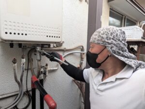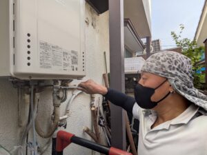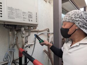 更にお客様と一緒に水漏れ・ガス漏れ確認を行います。
