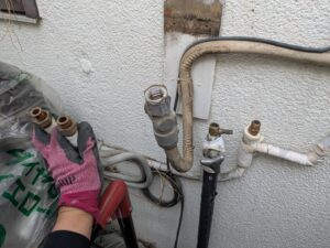 水・お湯・追い焚き・ガスの各配管を接続します。