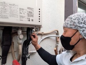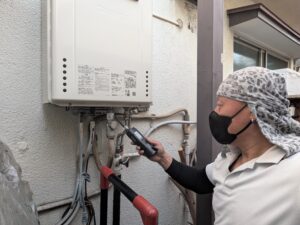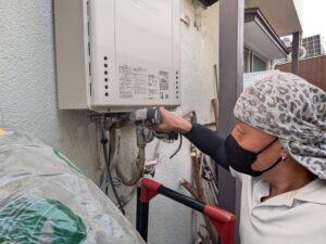 自動湯張りをして、各配管の水漏れとガス漏れを再確認します。