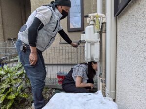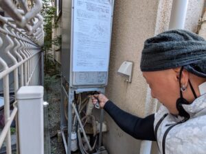 さらにお客様と一緒に水漏れ・ガス漏れの確認をします。