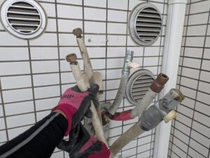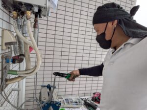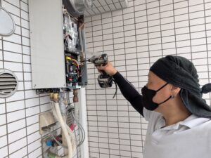 ガス給湯器交換施工中の様子