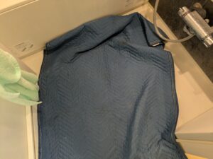 浴室の床を養生します。