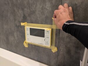 浴室リモコンのまわりをマスキングテープで養生します。