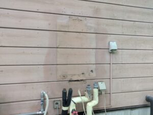 コンセントやリモコン線を抜いて各配管を外して給湯器本体を撤去します。