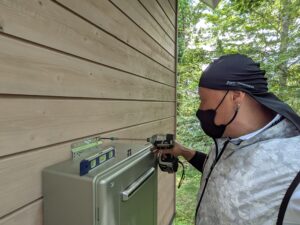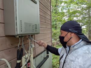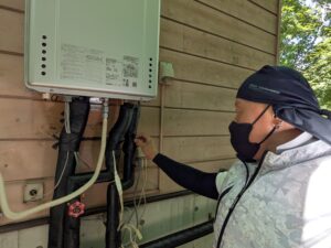 自動湯張りをして、各配管の水漏れとガス漏れを再確認します。