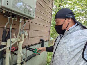 ガス給湯器交換施工中の様子