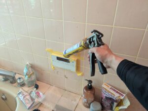 浴室リモコンまわりを防水の為シール処理します。