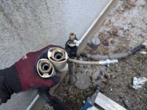 継手がある場合はその部分も外してパッキンを交換します。