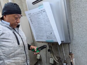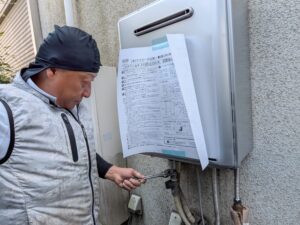 更にお客様と一緒に水漏れ・ガス漏れの確認をします。