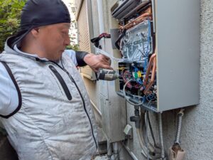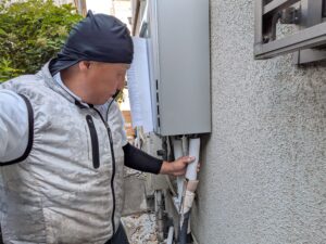 ガス給湯器交換施工中の様子
