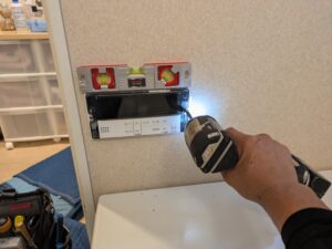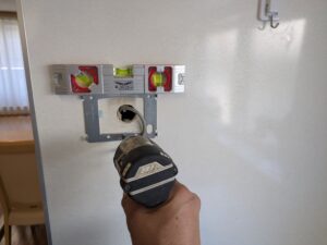 浴室リモコンの水平を確認しながらビス止めします。
