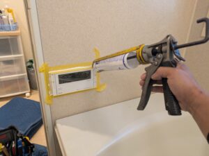 浴室リモコンまわりを防水の為シール処理します。