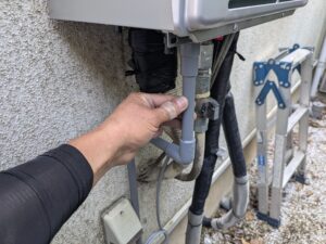 水・お湯・追い焚き・ガスの各配管を接続します。