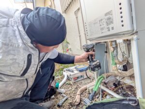 ガス給湯器交換施工中の様子