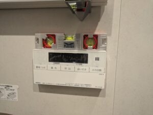 浴室リモコンの水平を確認しなから接着します。