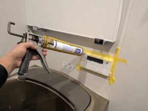 浴室リモコンまわりを防水の為シール処理します。