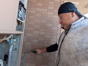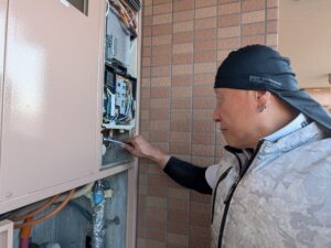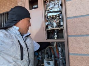 更にお客様と一緒にもう一度水漏れ・ガス漏れの確認をします。