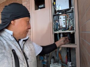 自動湯張りをして、各配管の水漏れとガス漏れを再確認します。