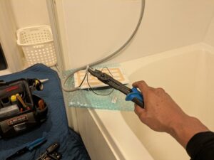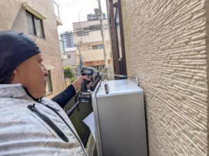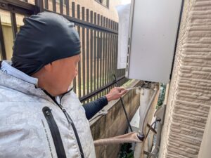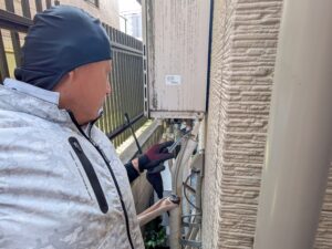 自動湯張りをして、各配管の水漏れとガス漏れを再確認します。