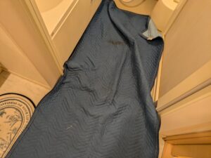 浴室の床を養生します。