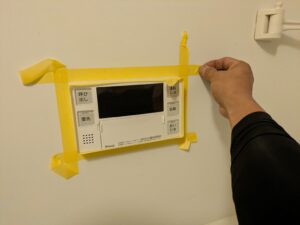 浴室リモコンのまわりをマスキングテープで養生します。