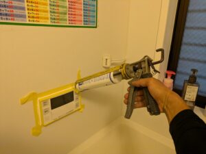 浴室リモコンまわりを防水の為シール処理します。
