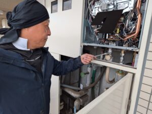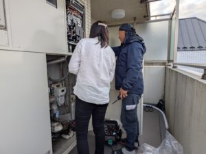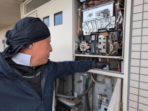 自動湯張りをして、各配管の水漏れとガス漏れを再確認します。