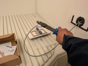 浴室リモコンと配線を接続します。