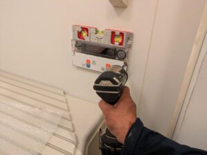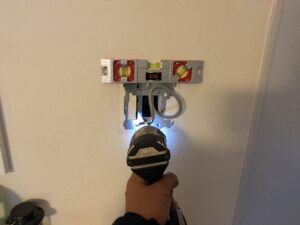 浴室リモコンの水平を確認しなからビス止めします。