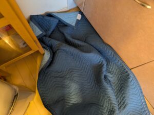 キッチンの床を養生します。