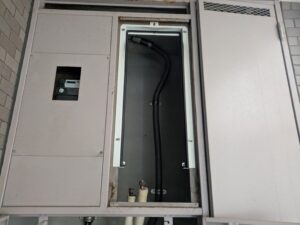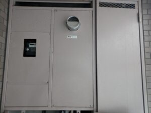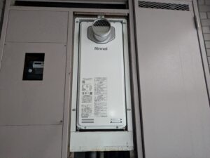 PS枠の前面パネルを外すと交換前の給湯器があります。