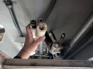 各配管接続部のパッキンを取って掃除しておきます。