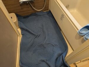 浴室の床を養生します。
