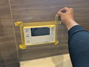 浴室リモコンのまわりをマスキングテープで養生します。