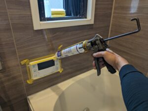 浴室リモコンまわりを防水の為シール処理します。