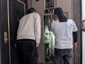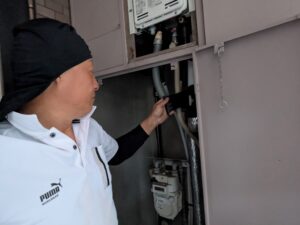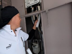 更にお客様と一緒にもう一度水漏れ・ガス漏れの確認をします。