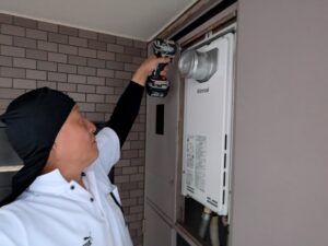 ガス給湯器交換施工中の様子