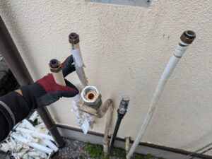 各配管の古いパッキン等を外し掃除します。