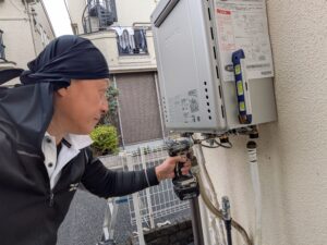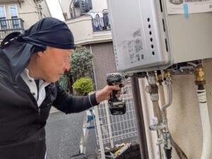 ガス給湯器交換施工中の様子